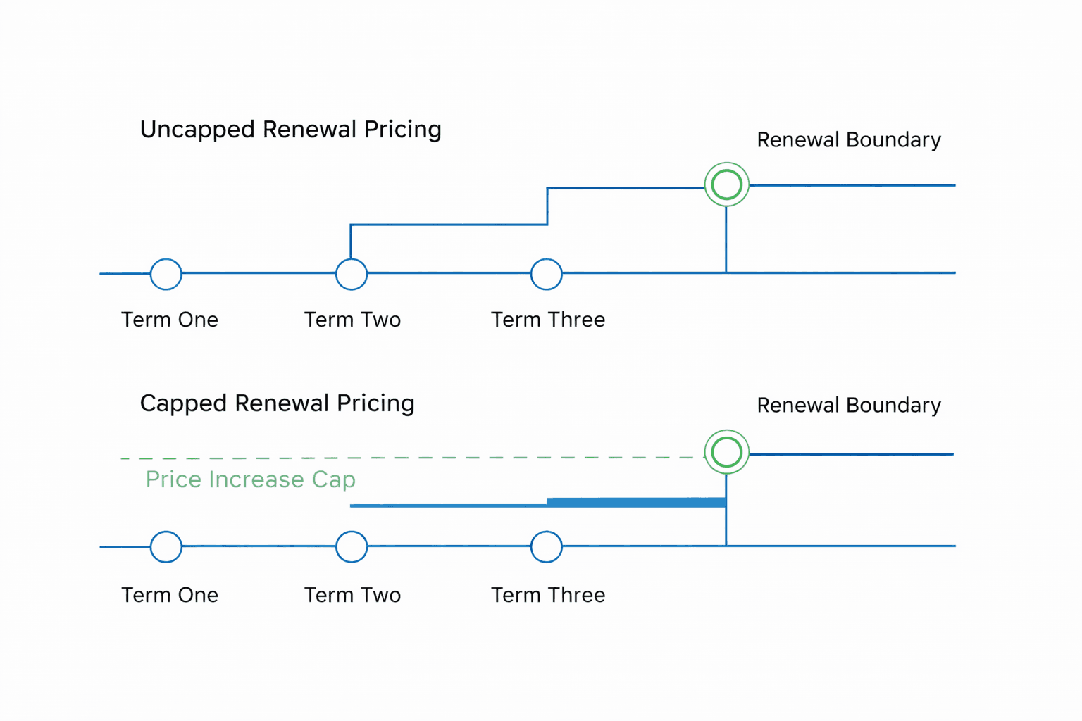 When uplift protections are absent or expire between contract cycles, renewal pricing may rise automatically even if contract structure remains unchanged.
